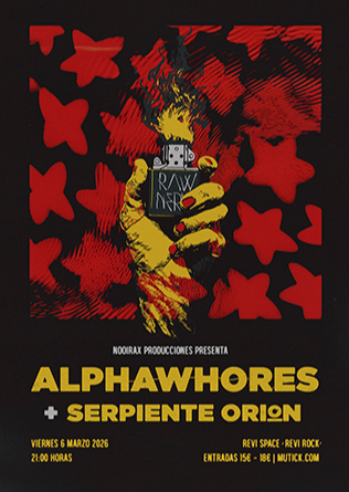 AlphaWhores se ha consolidado como una de las formaciones más potentes y singulares del panorama rock en España. Este dúo (formado por Juan Blood y Silvia Resorte) ha logrado captar la atención de la crítica y el público gracias a una propuesta que ellos mismos definen como "rock de alto voltaje", donde el stoner, el grunge y el punk colisionan en una pared de sonido asombrosa para ser solo dos personas sobre el escenario. Con... Leer más.