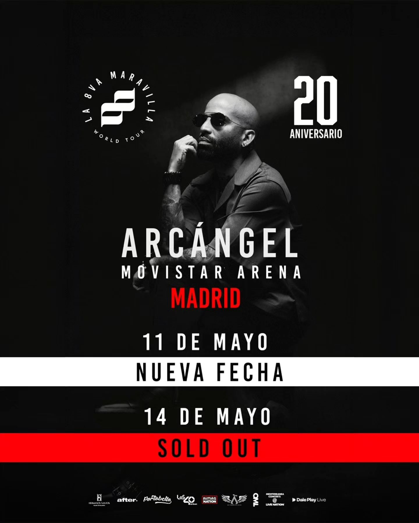 Nueva Fecha para Arcángel en en Madrid el próximo 11 de mayo de 2026, los madrileños recibirán "La 8va Maravilla World Tour", el espectáculo del artista puertorriqueño para celebrar su 20º aniversario. Venta el viernes 6 de marzo a las 12:00h