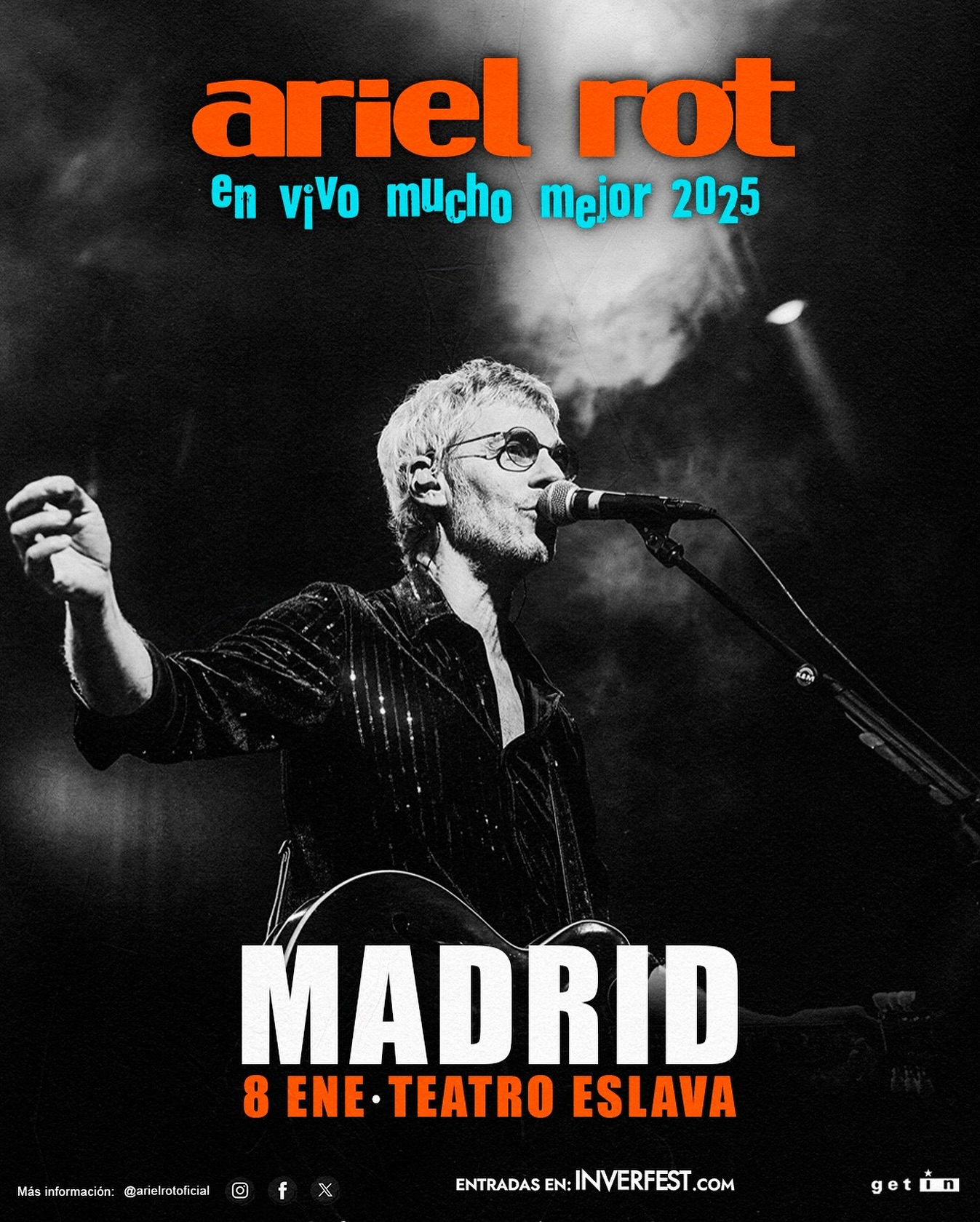 Ariel Eduardo Rotenberg Gutkin es mejor conocido como Ariel Rot, un guitarrista, cantante, compositor de música rock y blues de origen argentino. Formo parte de las bandas Tequila y Los Rodriguez, pero actualmente actúa en solitario. Su penúltimo álbum "Huesuda" ha sido lanzado en el año 2013 ha sido elegido por El País como el disco del año, del genero Pop Rock. Actualmente Ariel Rot esta inmerso en el lanzamiento de su nuevo disco "La... Leer más.