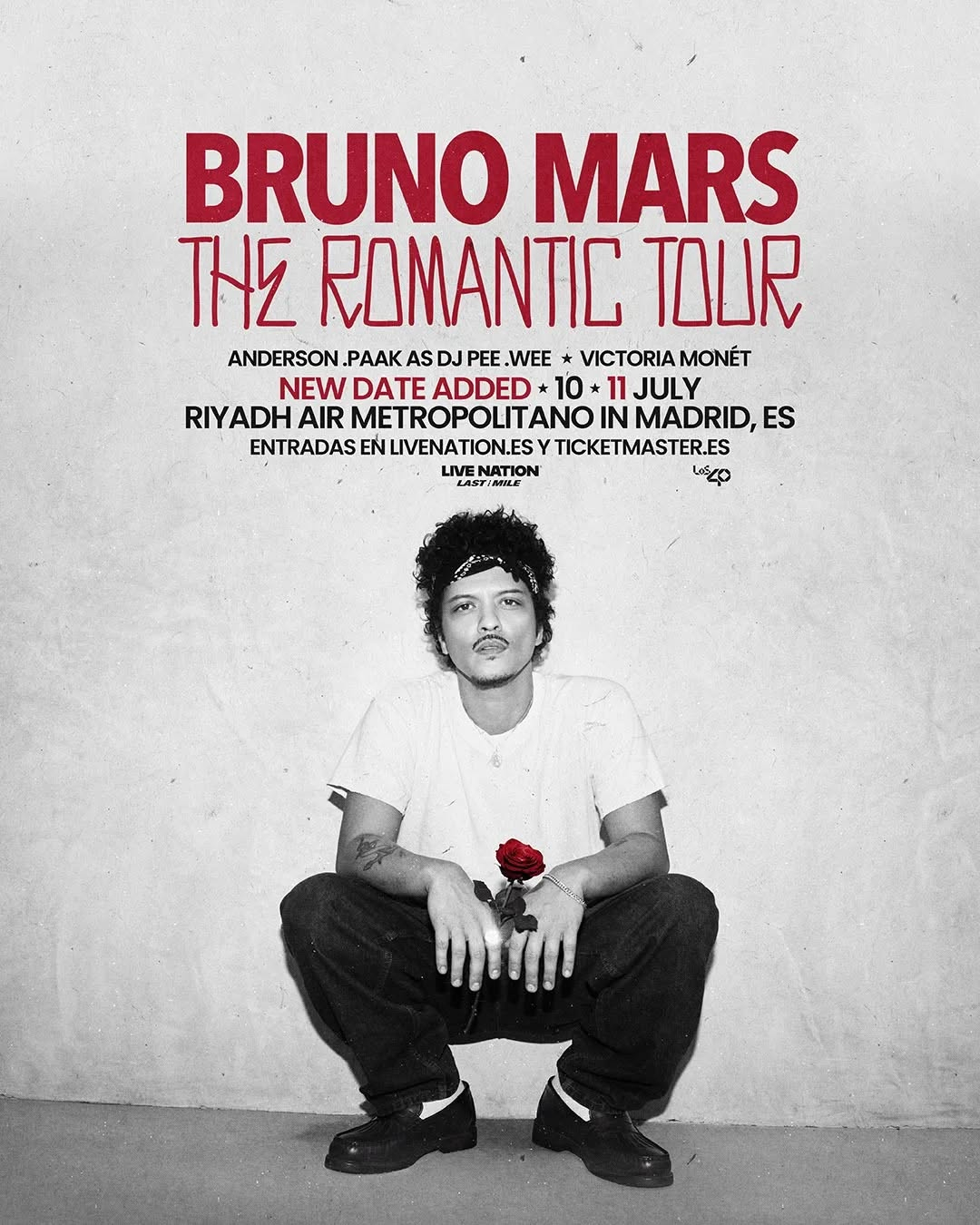 Bruno Mars llega a Madrid con dos shows de su "The Romantic Tour", los conciertos serán en el Estadio Riyadh Air Metropolitano el 10 y 11 de julio de 2026