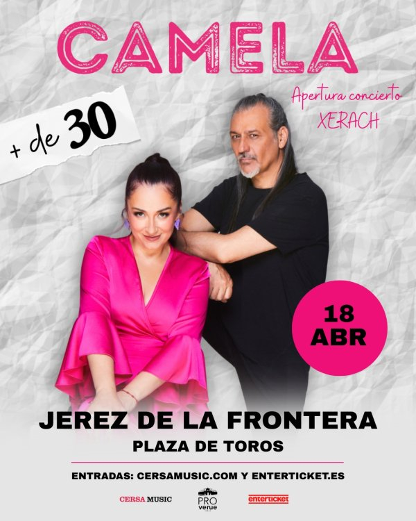 Camela es un legendario grupo del pop, flamenco que marco una época, actualmente un dúo formado por Dionisio Martín Lobato (Dioni Martín) y María de los Ángeles Muñoz Dueñas (Ángeles Muñoz). La formación madrileña con mas de 20 años de historia sigue girando por España con su nuevo álbum llamado "Mas de lo que piensas". Su música flamenco-dance levanta pasiones y criticas por igual, pero ahí siguen... La banda como tal no necesita presentación, es... Leer más.
