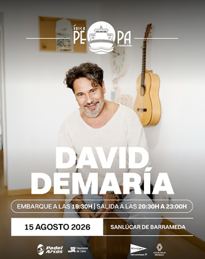 Travesía durante 2 horas y 30 minutos por la desembocadura del Río Guadalquivir al atardecer pasando por la orilla del Coto de Doñana con la actuación en directo de David DeMaría, dispondremos de servicio de barra y comida