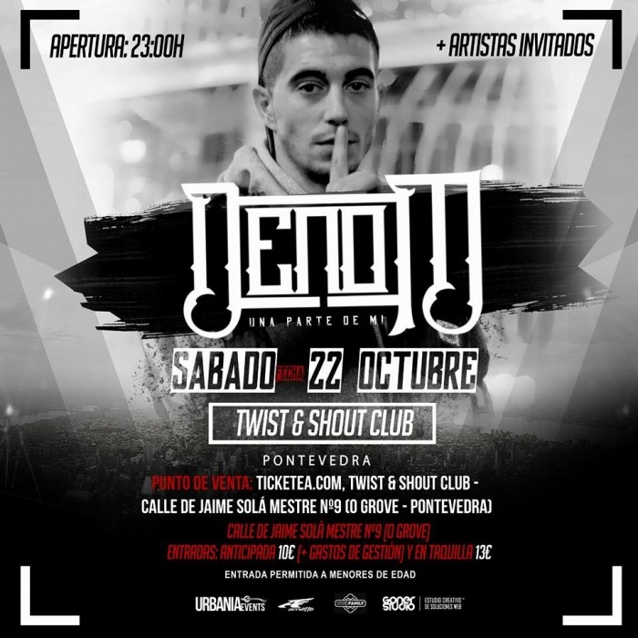 Este año tienes posibilidad de disfrutar de Denom en vivo y en directo. El artista ha hecho las maletas y se ha lanzado a la carretera... Entre las fechas anunciadas de momento puedes encontrar el concierto de en O Grove (Pontevedra), Lugo (Sala Clavicembalo), Madrid (Shoko), Barcelona (Bóveda) y Valencia (Sala Matisse). Las entradas se encuentran a la venta en Ticketea y puntos de venta autorizados desde 10-12 €.