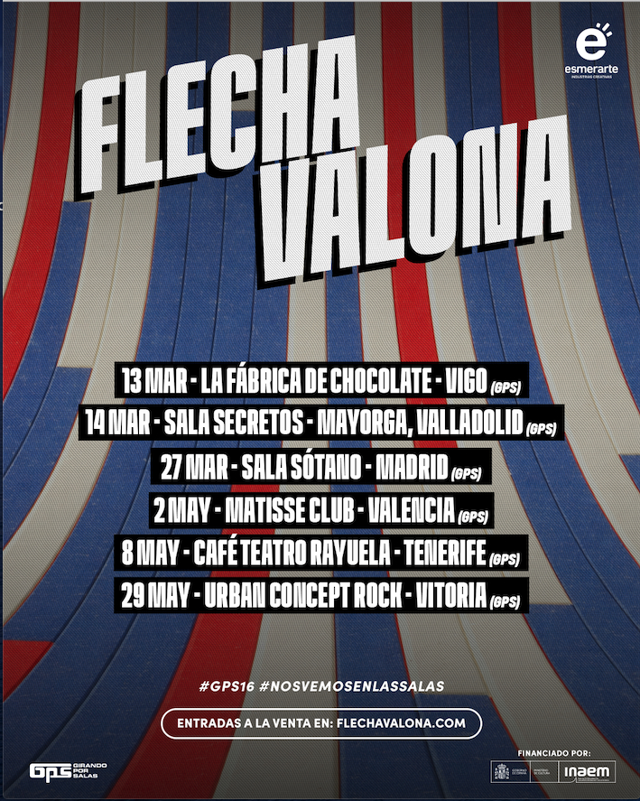 Flecha Valona anuncia su gira de 6 conciertos #GPS16 de Girando Por Salas, Vigo, Mayorga (Valladolid), Madrid, Valencia, Tenerife y Vitoria-Gasteiz son las ciudades elegidas en 2026