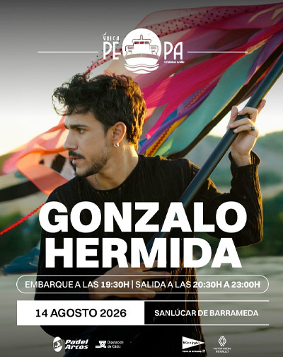 Travesía durante 2 horas y 30 minutos por la desembocadura del Río Guadalquivir al atardecer pasando por la orilla del Coto de Doñana con la actuación en directo de Gonzalo Hermida, dispondremos de servicio de barra y comida