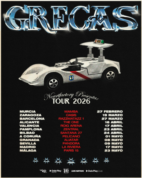 Grecas anuncia su gira de conciertos en España en 2026, presentando su nuevo álbum de estudio, "Escrito en la M-30", con doce fechas confirmadas para la primera mitad de año. ¡Entradas ya a la Venta!