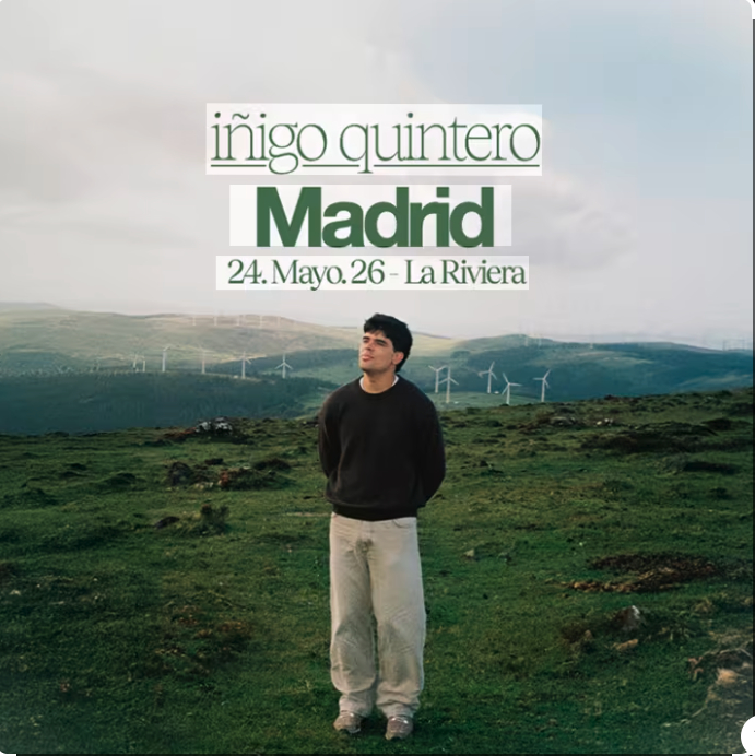 Iñigo Quintero celebra el éxito de su primer y recién editado disco, "El sitio de siempre" con el anuncio de su próxima gira mundial, la gira tendrá parada en Madrid el próximo mes de mayo