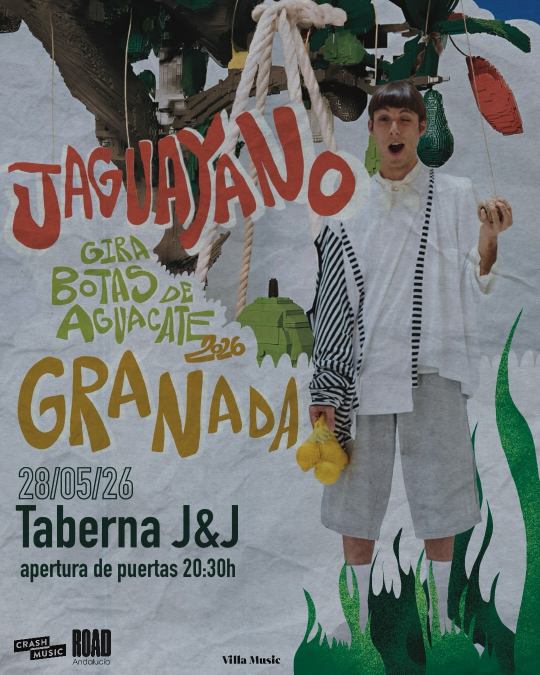 Jaguayano llega a Granada con su gira "Botas de Aguacate 2026". Pablo Gómez nos invita a un directo íntimo y luminoso, donde el ukelele y la guitarra de nylon nos transportan a playas imaginarias y puestas de sol eternas