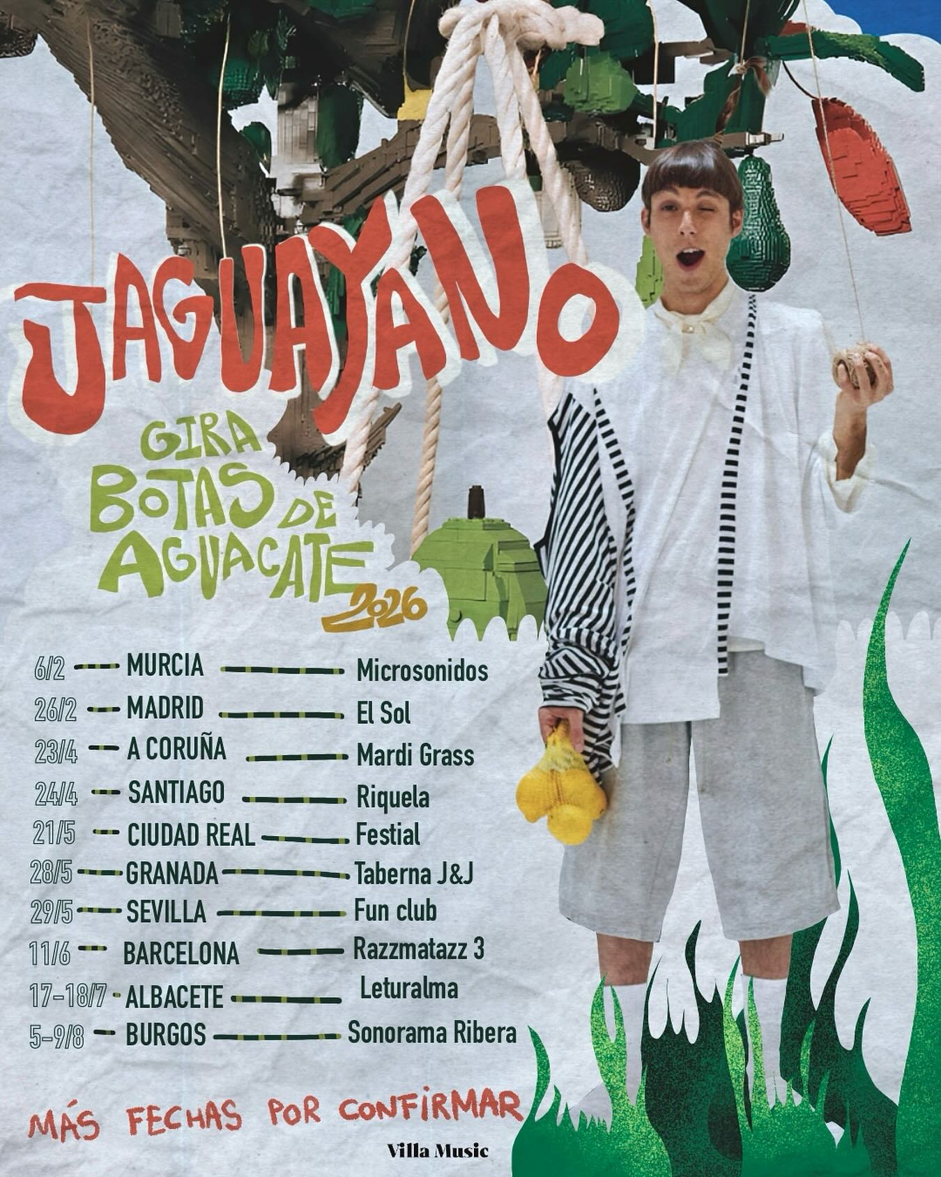 Jaguayano llega a Santiago de Compostela con su gira "Botas de Aguacate 2026". Pablo Gómez nos invita a un directo íntimo y luminoso, donde el ukelele y la guitarra de nylon nos transportan a playas imaginarias y puestas de sol eternas