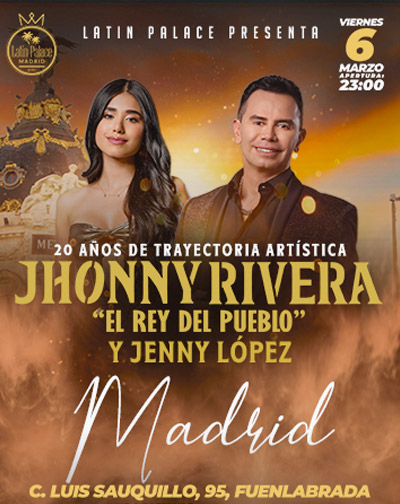 Compra tus entradas para el concierto de Jhonny Rivera "El Rey del Pueblo" y Jenny López que se tendrá lugar en Latin Palace Madrid el 6 de marzo de 2026