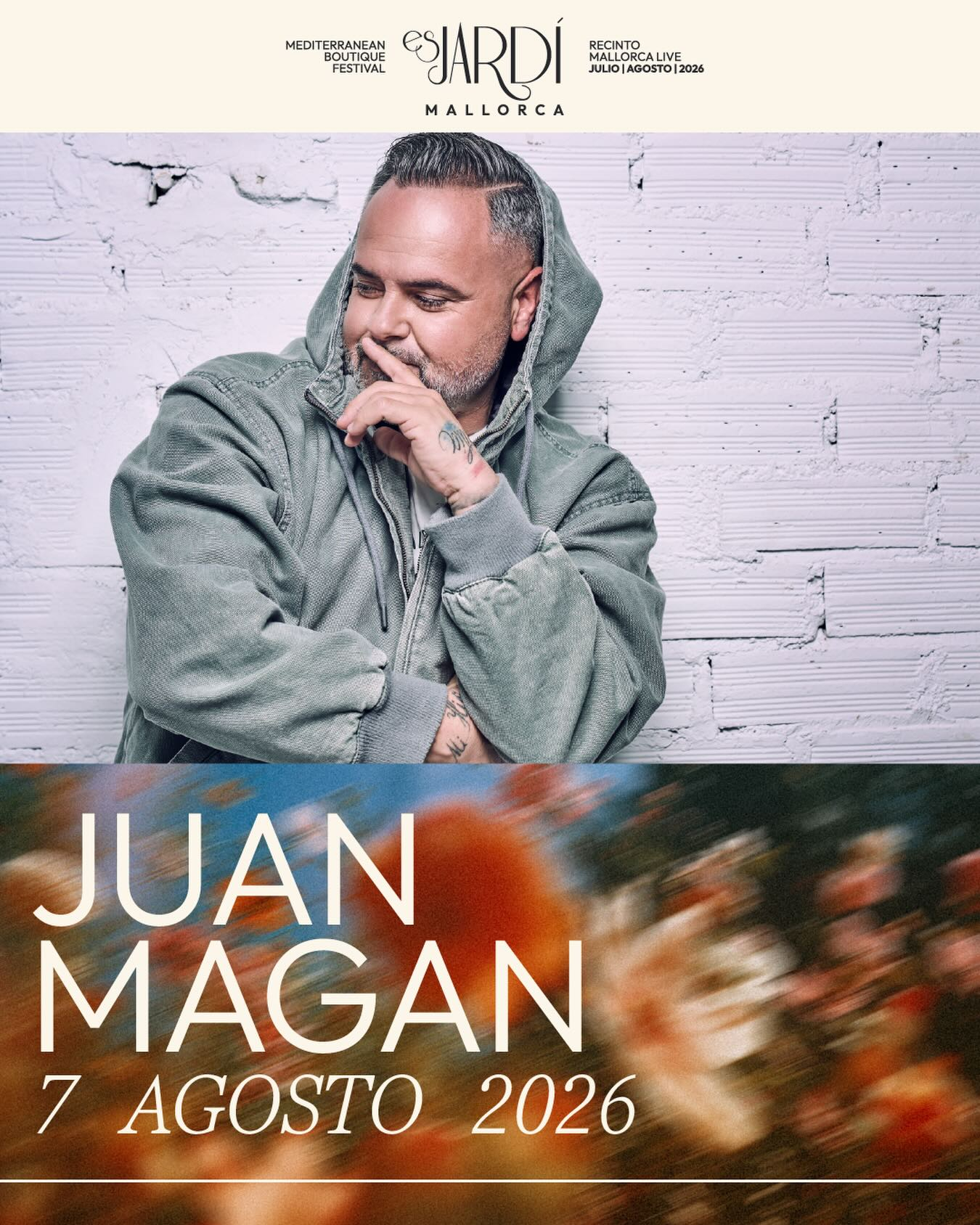 Actuación de Juan Magán en el Festival Es Jardí de Palma de Mallorca, será el próximo 7 de agosto 2026 a las 22:00h