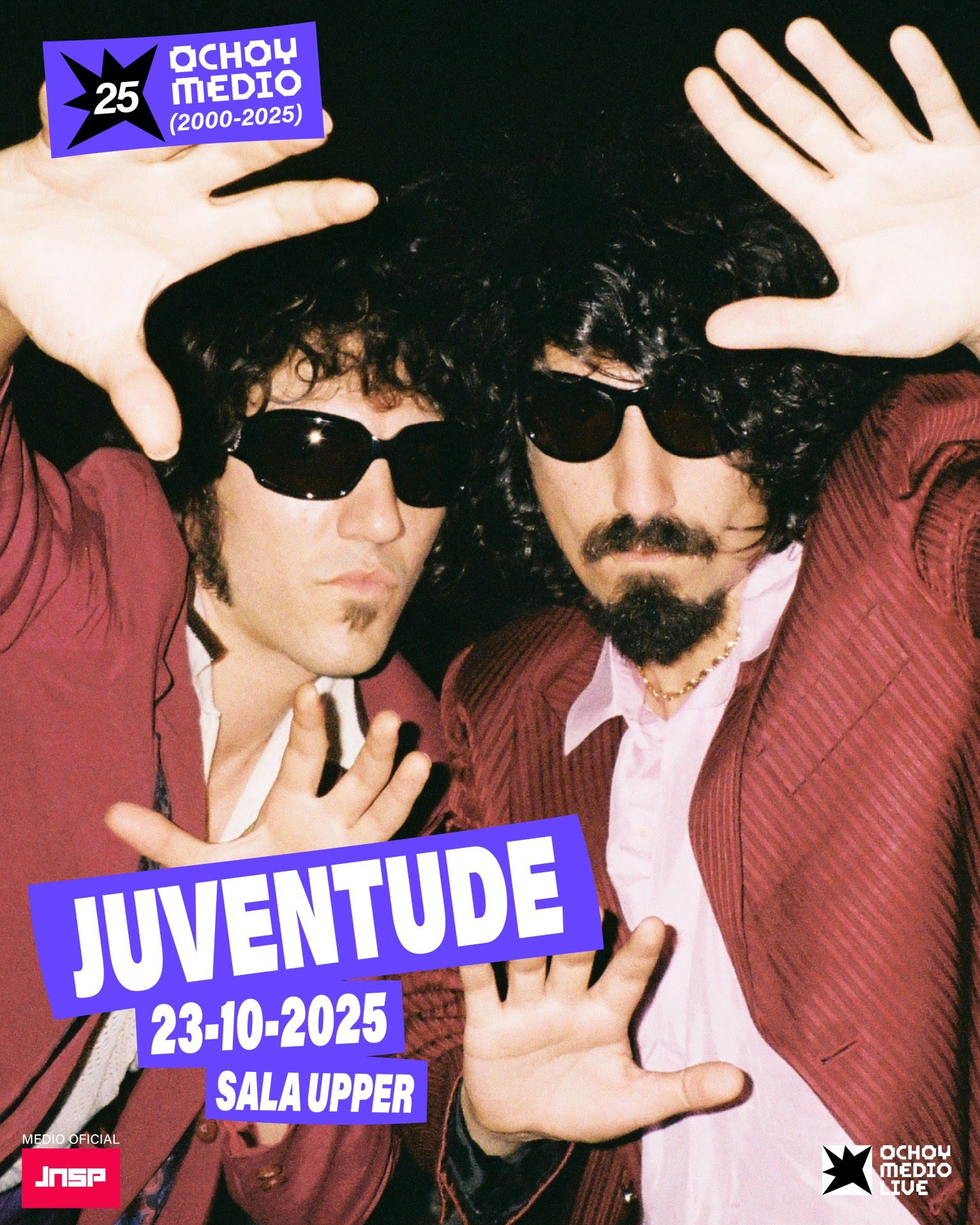 Juventude es un dúo musical de Sevilla, formado en 2024 por Ángel y Nico, que ha irrumpido en el panorama con una propuesta audaz y ecléctica. Su estilo se describe como una poderosa fusión de rock y pop surrealista que incorpora referencias a la música popular española, los sonidos hippie de los años 60 y 70, el 2-tone y hasta el estilo kinki. El dúo busca un sonido sin fronteras, con una estética particular reflejada... Leer más.
