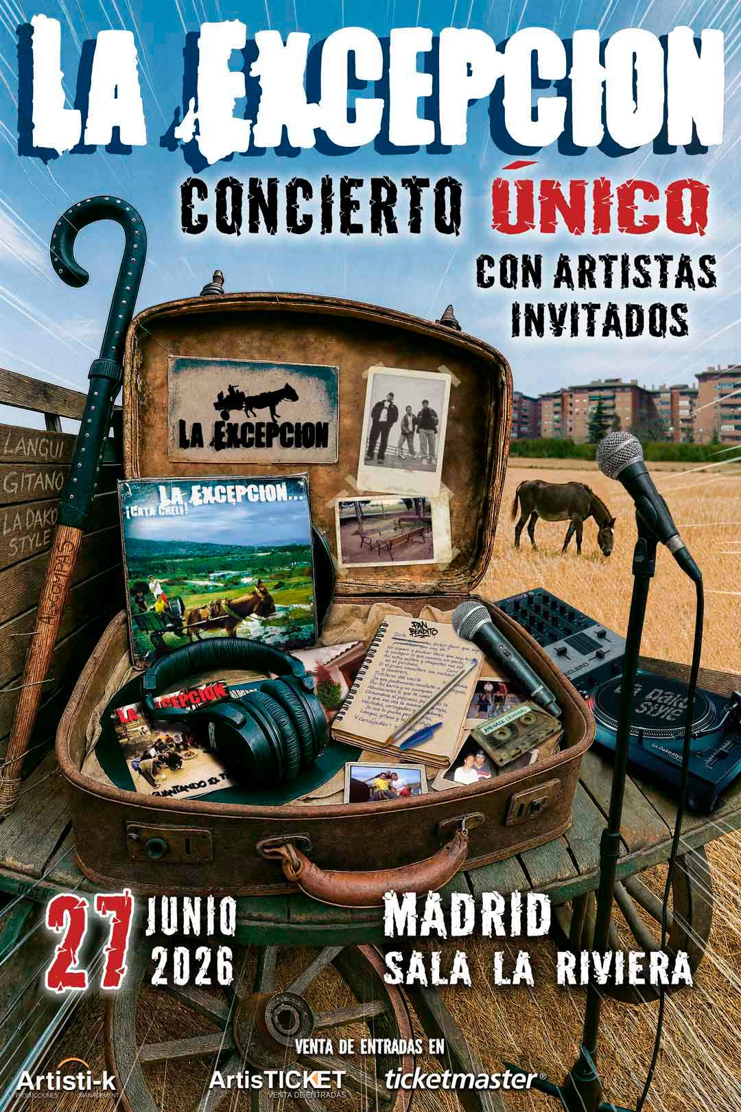 La Excepción (La excepción que confirma la regla) es un grupo madrileño que revolucionó el panorama del hip-hop en español desde su barrio de origen, Pan Bendito, en el distrito de Carabanchel. El grupo está compuesto por los MC's El Langui (Juan Manuel Montilla), Gitano Antón (Antonio Moreno) y el DJ La Dako Style (Javier Ibañez).Su propuesta supuso una ruptura con los moldes establecidos del género al integrar de forma desenfadada aires flamencos, el lenguaje... Leer más.