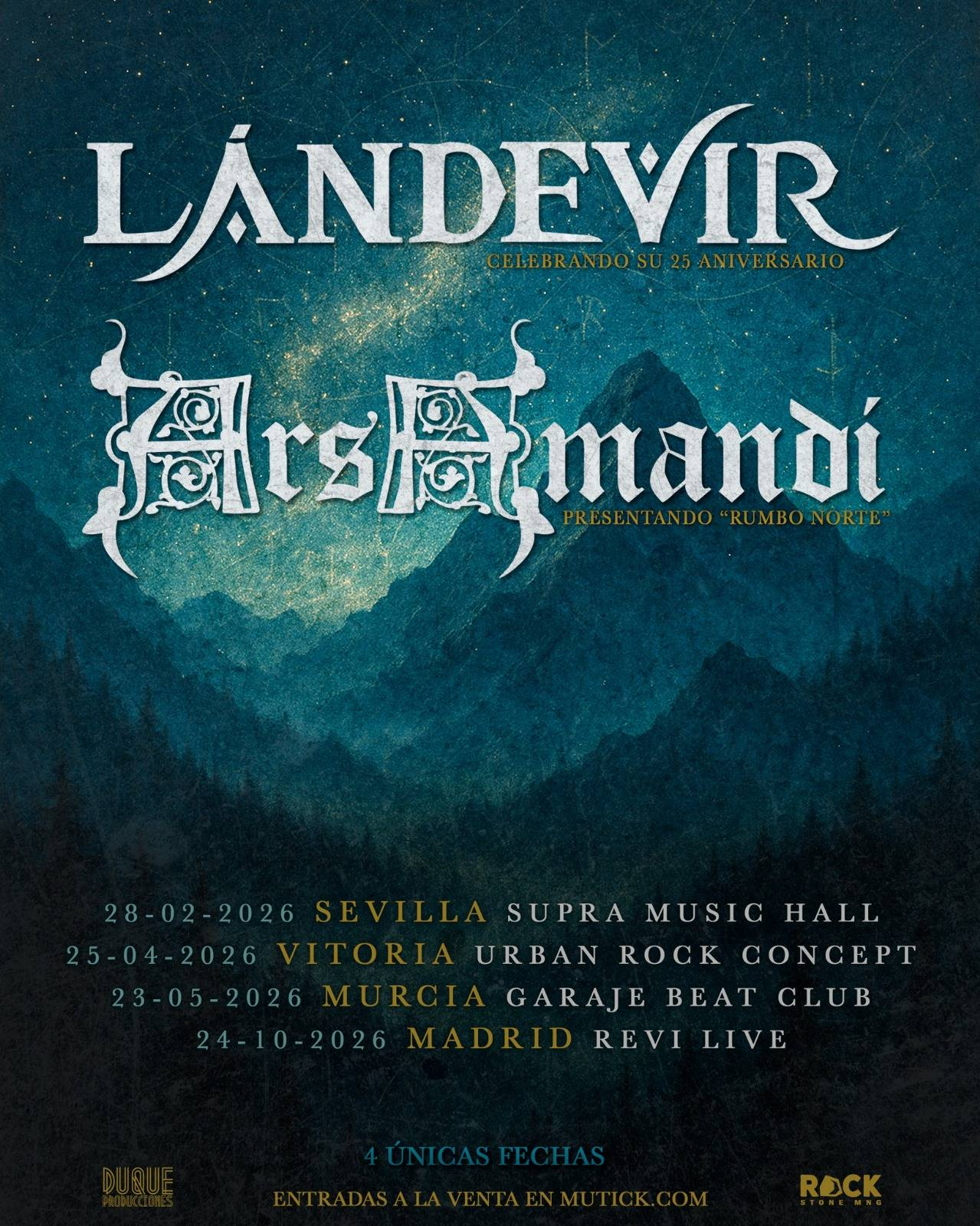 Ars Amandi + Lándevir, dos bandas pioneras del folk rock en España, juntos en una gira por cuatro ciudades españolas, Madrid, Sevilla, Vitoria y Murcia, Lándevir celebra su 25º Aniversario y Ars Amandi presentando su nuevo trabajo: “Rumbo norte”