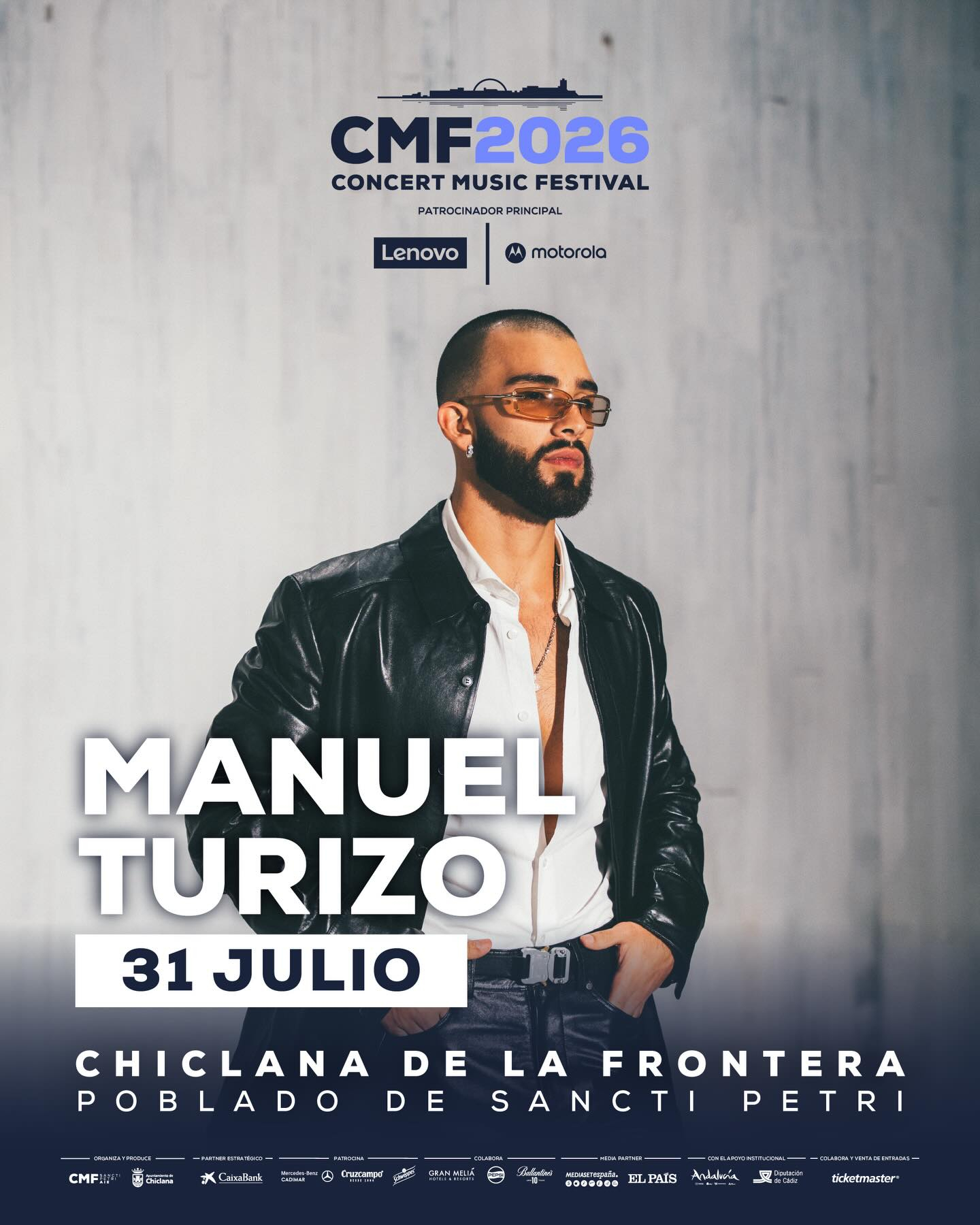 Nueva Confirmación en el Concert Music Festival Sancti Petri para 2026, Manuel Turizo, el próximo 31 de julio el artista colombiano actuará en el escenario de Chiclana de la Frontera