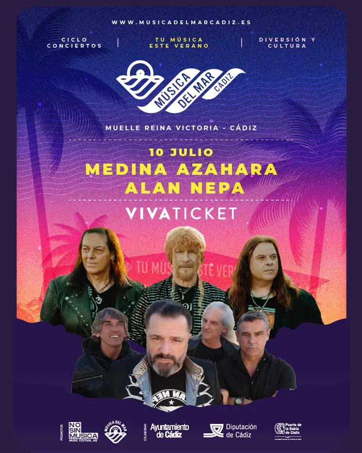 Medina Azahara se presenta en Cádiz junto a la banda gaditana Alan Nepa, dentro del Festival Música del Mar 2026, próximo 10 de julio en el Muelle Reina Victoria. ¡Entradas ya a la Venta!