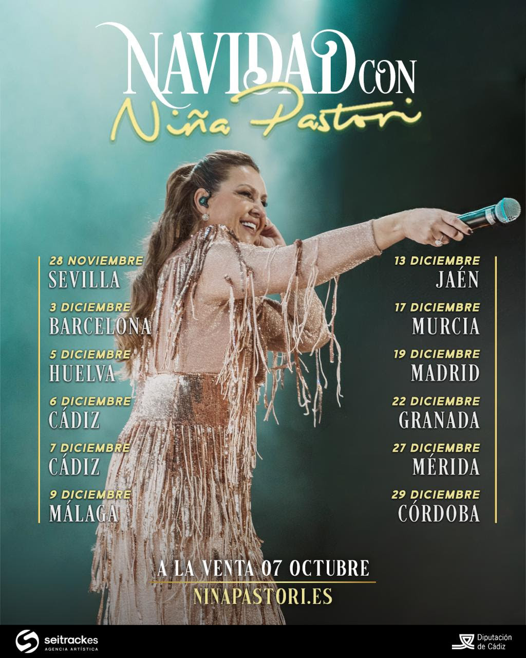 Niña Pastori: Entradas a la venta a partir del 7 de octubre a las 10:00 AM, excepto las fechas de Cádiz que estarán a la venta tanto físico como online el 8 de octubre a las 10:00 AM