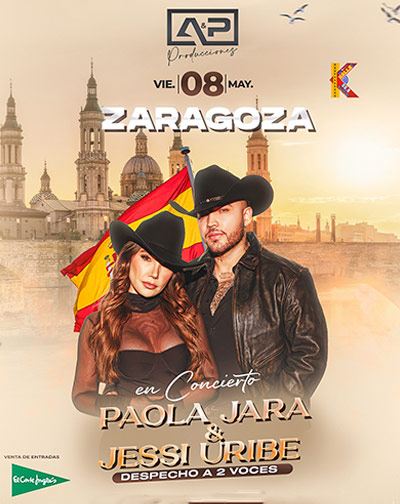 Paola Jara & Jessi Uribe y Los Inquietos del Vallenato, con su gira "Despecho a Dos Voces", un show que tendrá lugar en la Garden Discoteca de Zaragoza, el próximo 8 de mayo de 2026