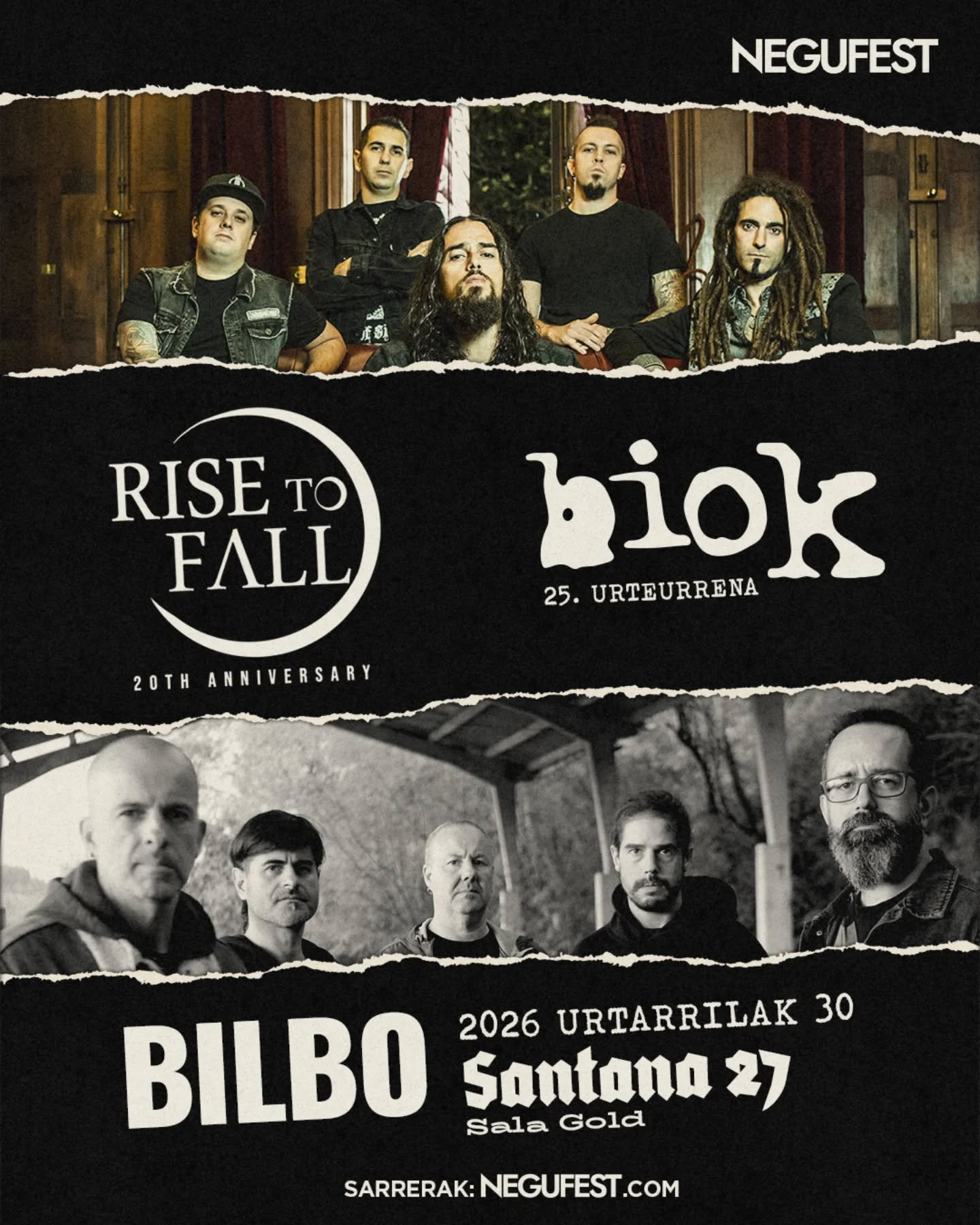 Doble cumpleaños del METAL en el NEGUFEST 2026: Rise To Fall celebrando su 20º Aniversario y Biok conmemorando su 25º Aniversario, las dos bandas juntas en la Sala Santana de Bilbao el próximo 30 de enero