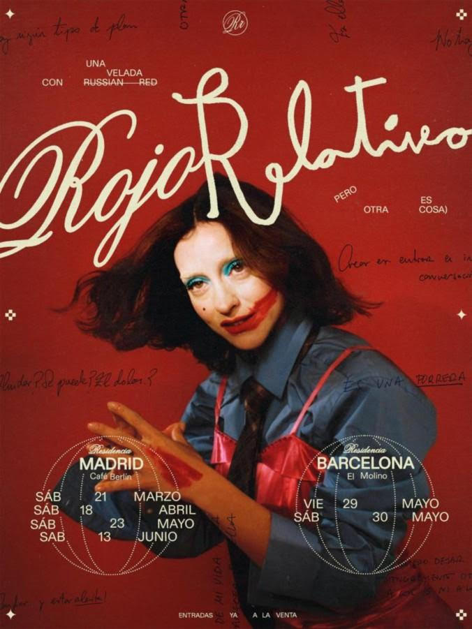 Russian Red está en su era de "Rojo Relativo", una evolución escénica musical donde se mezclan como en sueños: música, poesía, cuerpo e improvisación. No es una gira ni un regreso, es un CABARET MÍSTICO elegante y surrealista