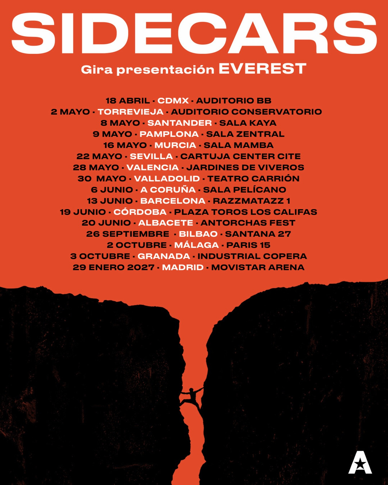 Sidecars lanza su nuevo disco: “Everest”. La gira con mas de 16 conciertos por toda España arrancará en 2026 en México y cerrará por lo mas alto en el Movistar Arena el 29 de enero de 2027