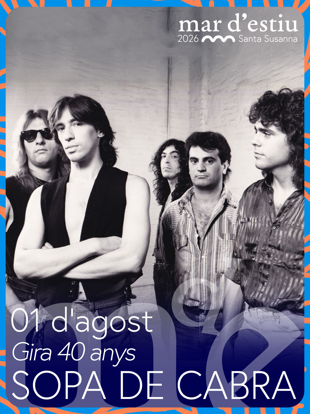 Sopa de Cabra, una de las bandas pioneras y más relevantes de la historia del rock catalán, celebra en 2026 sus primeros 40 años de historia con una gira muy especial en el Festival Mar D'Estiu de Santa Susanna