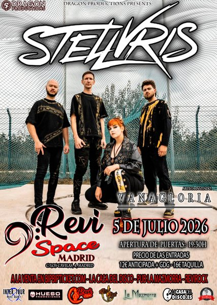 La cuarteto checo Stellvris y la banda madrileña Vanagloria descargaran el mejor metal pesado en la Sala Revi Live de Madrid, próximo 5 de julio 2026