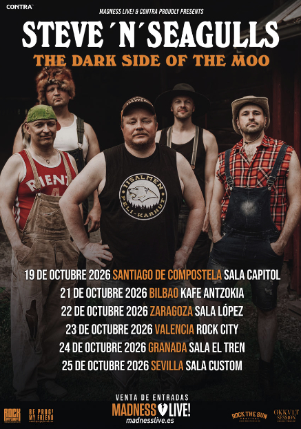 La inusual y explosiva banda finlandesa Steve’n’Seagulls regresa a España en octubre de 2026 para una gira nacional, presentando su esperado quinto álbum de estudio: ‘The Dark Side of the Moo’ (disponible en 2025).Desde su nacimiento alrededor de 2010, Steve’n’Seagulls ha sorprendido al mundo combinando... Leer más.
