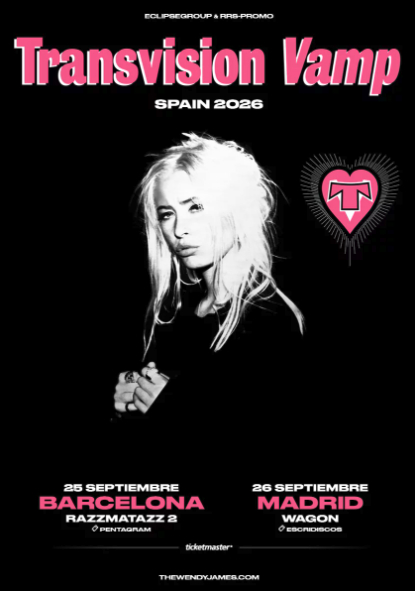 Transvision Vamp anuncia dos conciertos en España para el próximo 2026. Las citas con la banda liderada por Wendy James serán el 25 de septiembre en la sala Razzmatazz de Barcelona y el día 26 en la Sala Wagon de Madrid