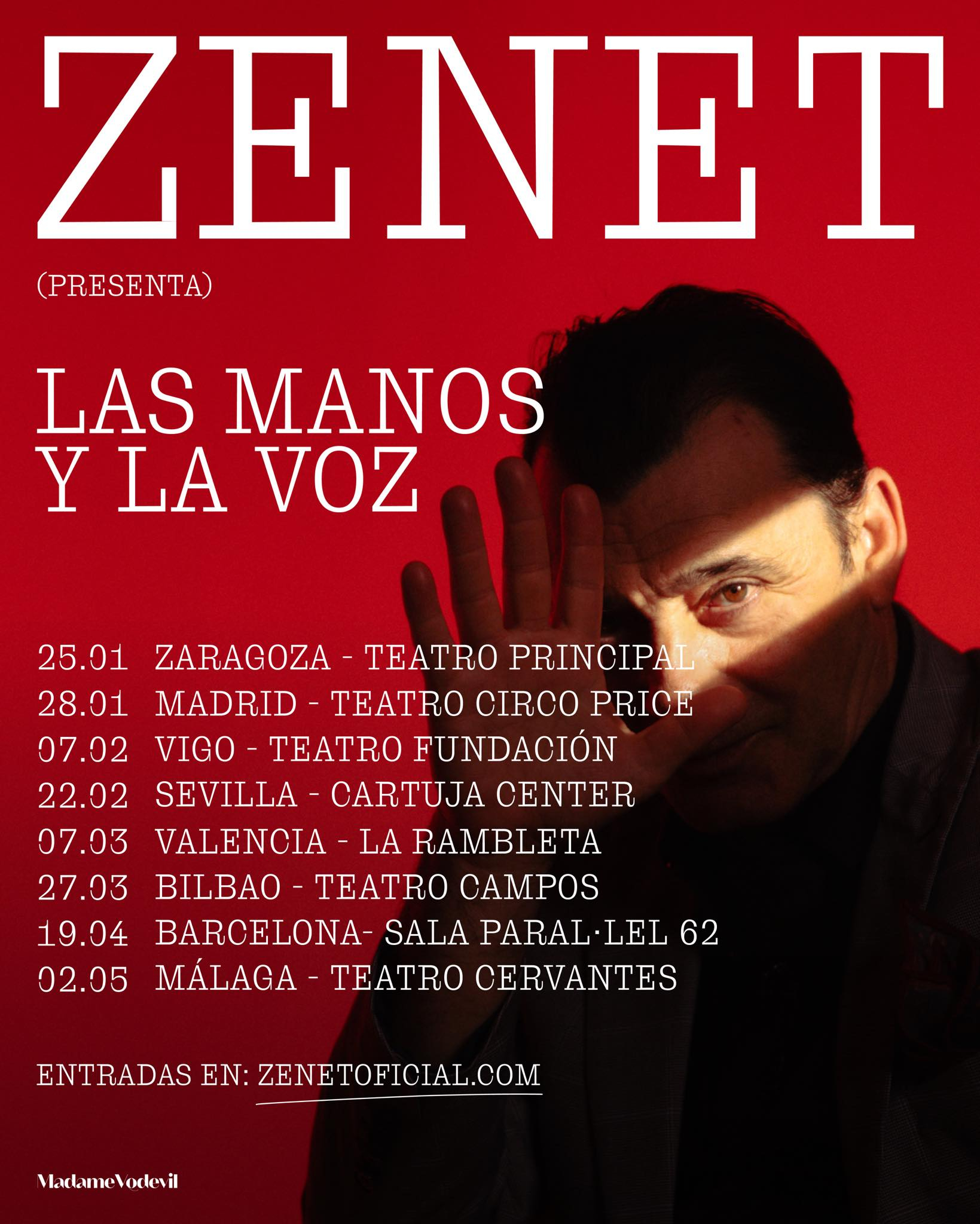 Zenet vuelve a los escenarios con un concierto donde presentará en directo su nuevo trabajo, "La voz y las manos", uno de sus discos mas íntimos, centrado en la esencia de la canción y los géneros que han marcado su vida.