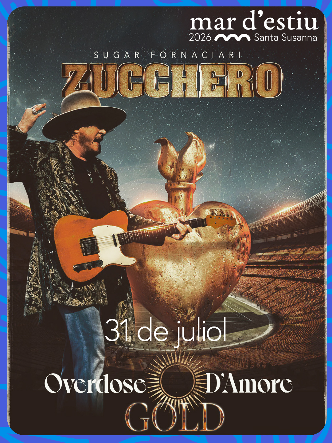 Zucchero: El "Bluesman" Italiano iluminará el Festival Mar d'Estiu 2026. El concierto tendrá lugar el viernes 31 de julio de 2026 en el espacio Torrentó de Can Gelat, en Santa Susanna (Barcelona)