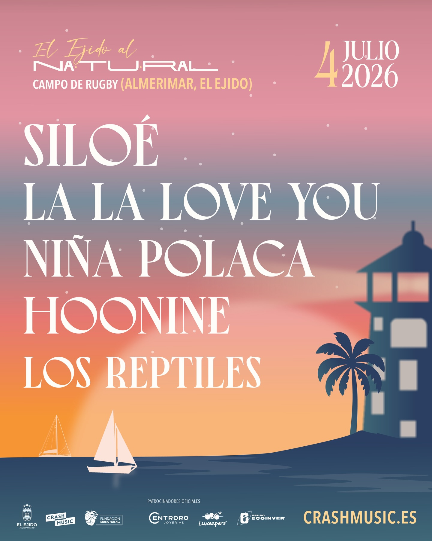 El Ejido al Natural 2026: El próximo 4 de julio, SILOÉ, LA LA LOVE YOU, NIÑA POLACA, HOONINE y LOS REPTILES. Cinco bandas, el Mediterráneo de fondo y el mejor ambiente indie del verano en Almería