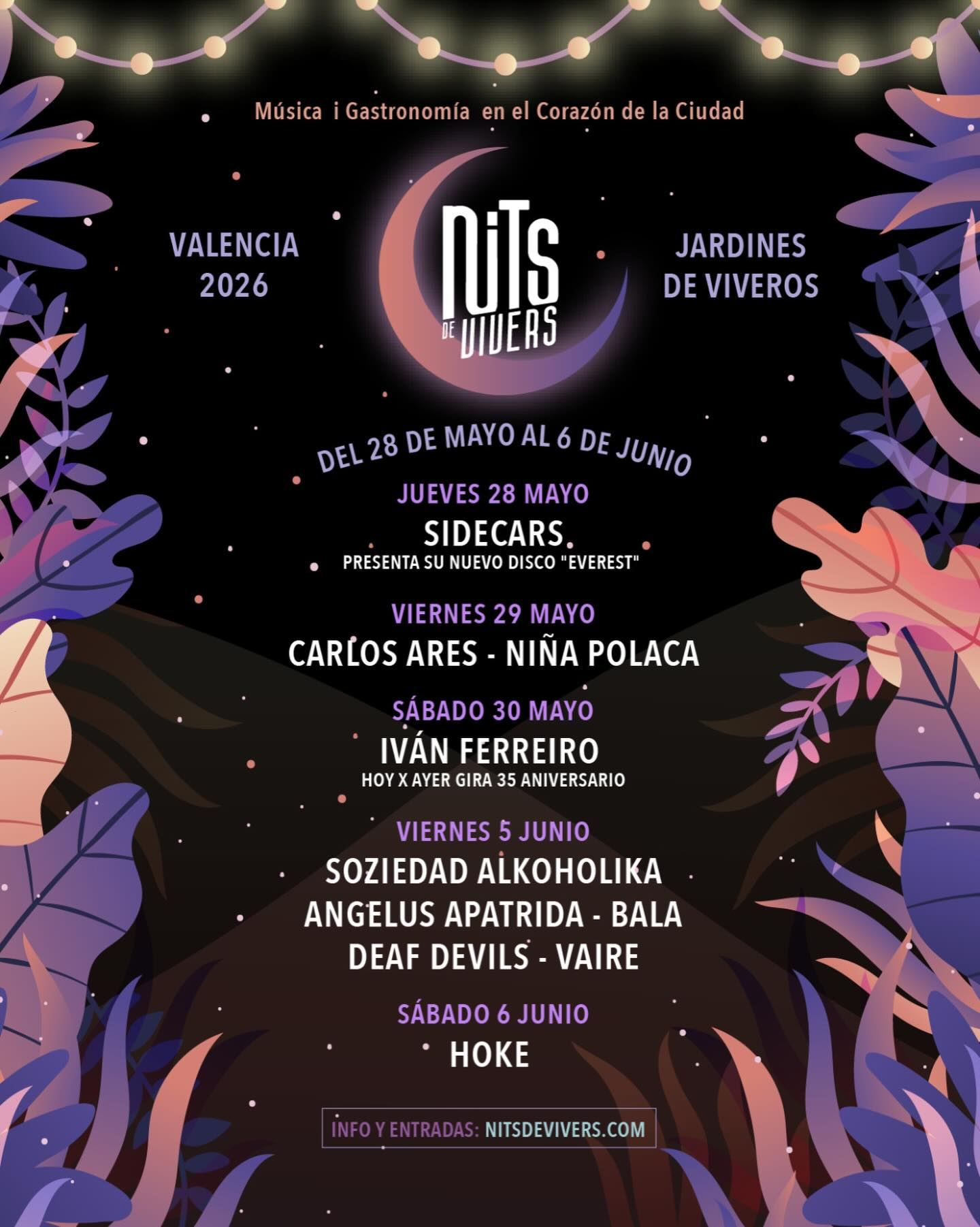 Nits de Vivers viene fuerte este 2026, se empieza a calentar el ambiente con los artistas confirmados, el 5 de junio en los Jardines de Viveros estarán Soziedad Alkoholika, Angelus Apatrida, Bala, Deaf Devils y Vaire
