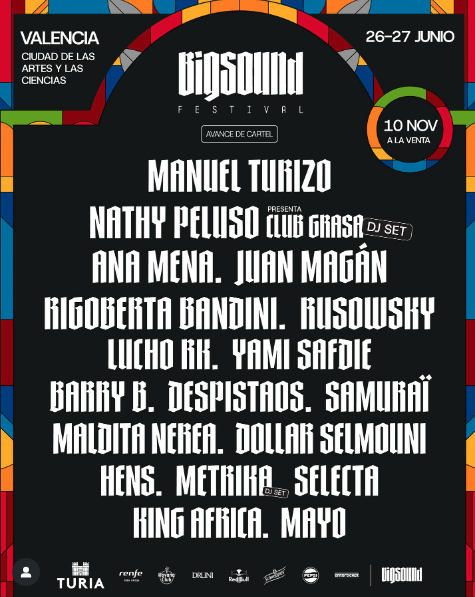 El primer avance del cartel está encabezado por figuras de talla mundial: Manuel Turizo (en su única confirmación española de 2026 y fecha exclusiva en la Comunidad Valenciana), y Nathy Peluso, quien presentará en exclusiva su nuevo espectáculo CLUB GRASA (DJ set). A ellos se unen nombres destacados como Ana Mena, Rigoberta Bandini, Juan Magán, Lia Kali, Rusowsky y Yami Safdie, garantizando dos días de máxima intensidad musical en el corazón de València.