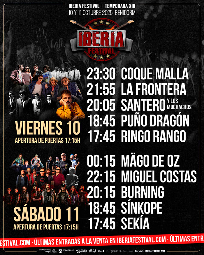 El Iberia Festival celebra su decimotercera edición los días 10 y 11 de octubre en el Auditorio Julio Iglesias de Benidorm, presentando un cartel de puro rock que promete dos jornadas inolvidables. Este año, el festival reúne a grandes leyendas del rock español con nuevas propuestas de la escena actual, reflejando la riqueza musical del país.