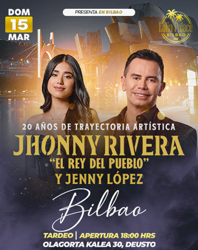 Compra tus entradas para el concierto de Jhonny Rivera "El Rey del Pueblo" y Jenny López que se tendrá lugar en Latin Palace de Bilbao el 15 de marzo de 2026