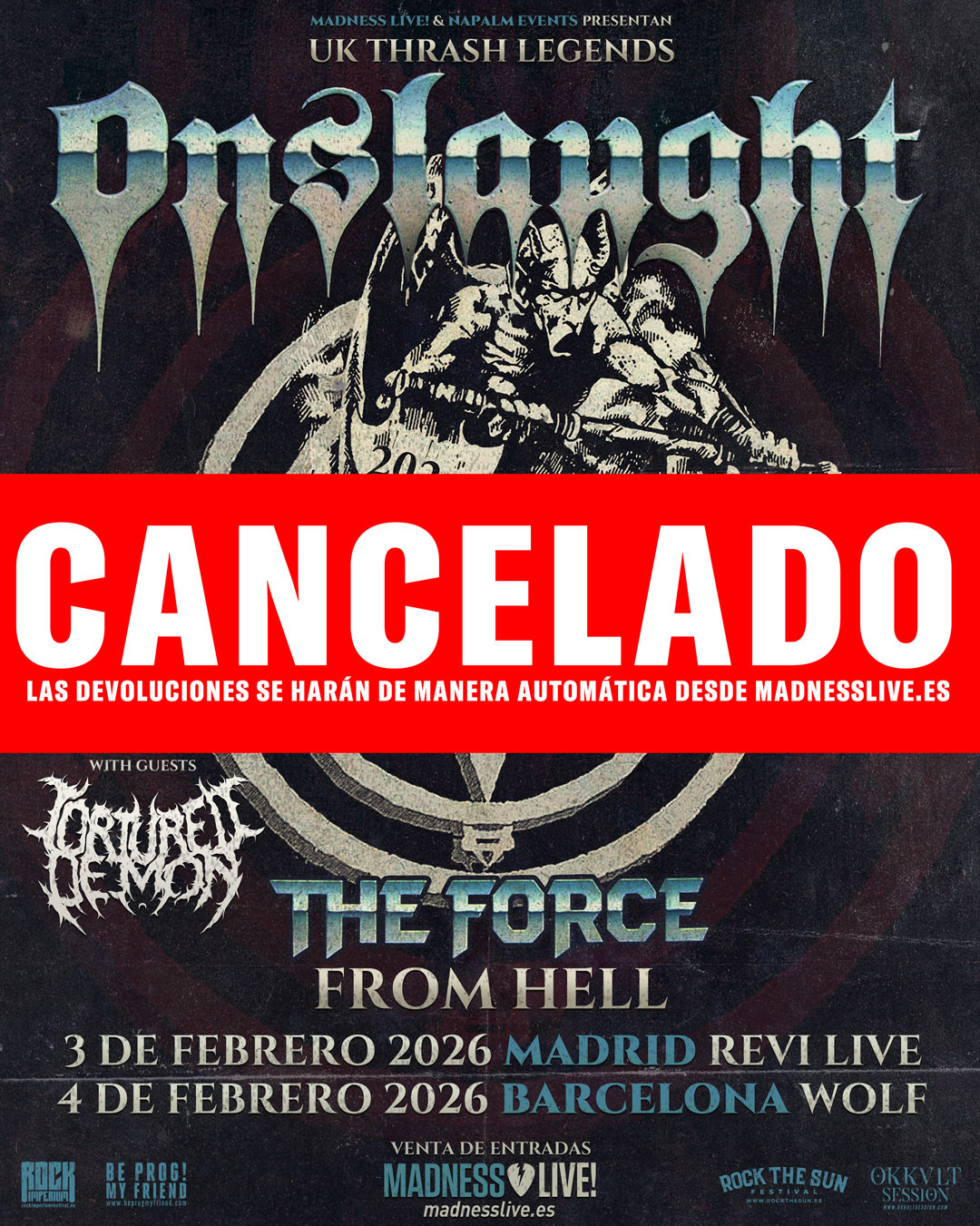 GIRA DE ONSLAUGHT + TORTURED DEMON 2026 CANCELADA
