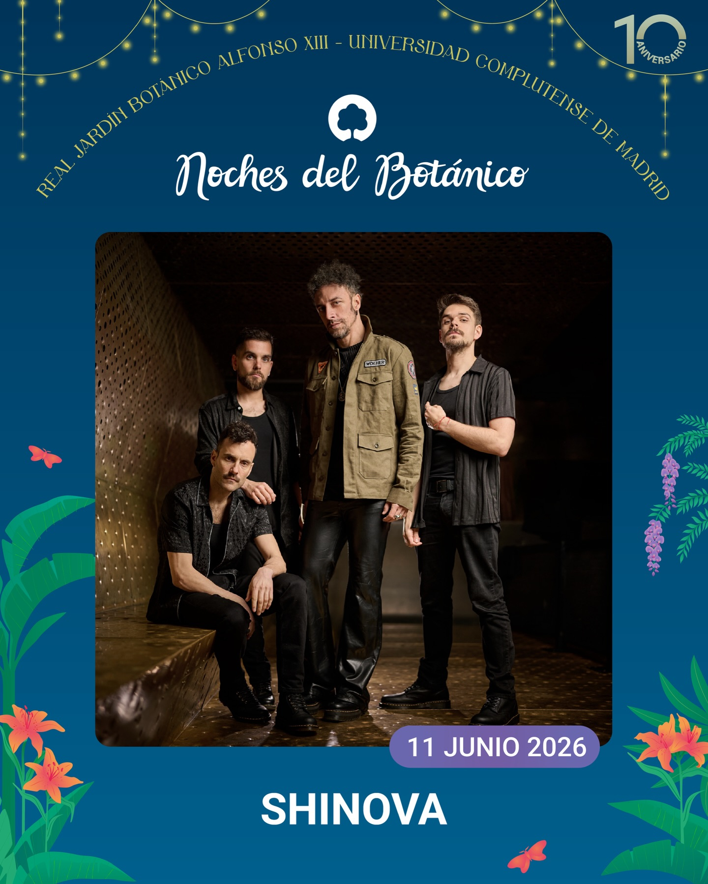 Shinova confirma su asistencia al Ciclo de Conciertos de la Noches del Botánico 2026, la banda vizcaína actuara el próximo 11 de junio en el maravilloso escenario del Real Jardín Botánico Alfonso XIII