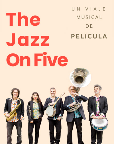 Jazz on Five es un singular grupo musical que ha cautivado al público con su estilo inconfundible y un repertorio lleno de sorpresas. Su atípica formación, compuesta por clarinete, flauta, saxofón, guitarra, tuba y batería, genera una experiencia sonora vibrante y enérgica. La propuesta musical de la banda se centra en reinterpretar de forma divertida y audaz grandes clásicos del cine de ayer y hoy. Su repertorio abarca desde composiciones de Nino Rota, Henry Mancini,... Leer más.