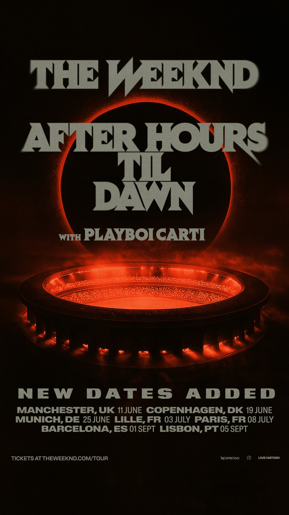 El artista global The Weeknd ha confirmado un concierto en su tour europeo en Barcelona, será el 1 de septiembre de 2026 en el Estadio Lluis Companys. Estas serán las únicas fechas en el país para presentar su nuevo álbum, "Hurry Up Tomorrow"