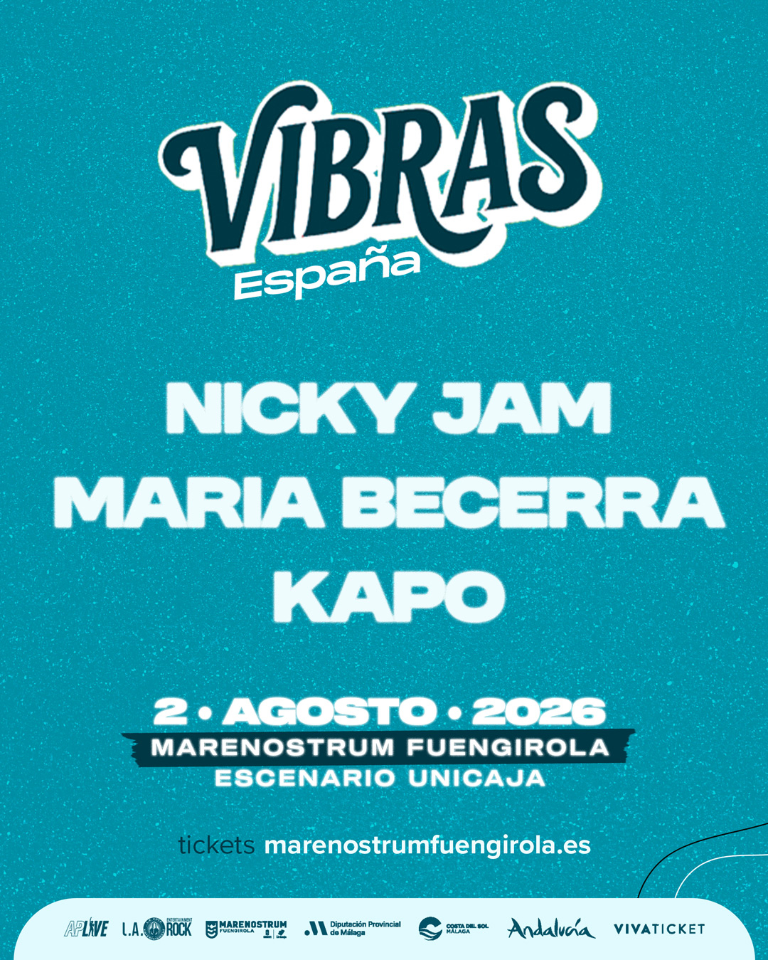 VIBRAS España en el Festival Marenostrum de Fuengirola 2026, con Nicky Jam, Maria Becerra y Kapo, el próximo 2 de agosto a las 18:00h. ¡Entradas ya a la Venta!