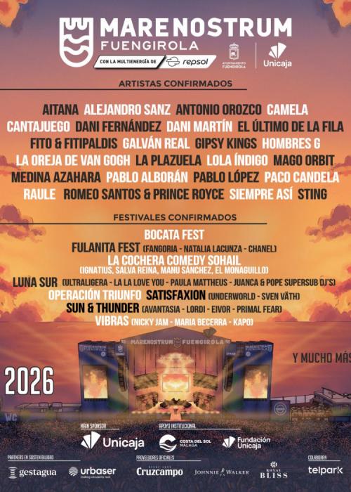 Marenostrum Fuengirola celebrará en 2026 su décimo aniversario como uno de los ciclos musicales más destacados de España. Nacido de la iniciativa del Ayuntamiento de Fuengirola para posicionar la ciudad a nivel internacional, este recinto ha atraído a grandes artistas y miles de visitantes, ofreciendo una experiencia única a orillas del Mar Mediterráneo y en un entorno histórico como el Castillo Sohail y la Ciudad Romana de Suel.